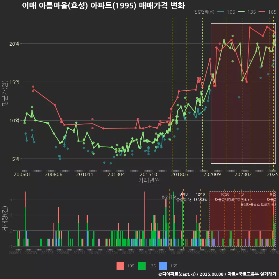 최근 거래 기준, 아름마을(효성) 아파트는 보합 추세를 보이고 있습니다.